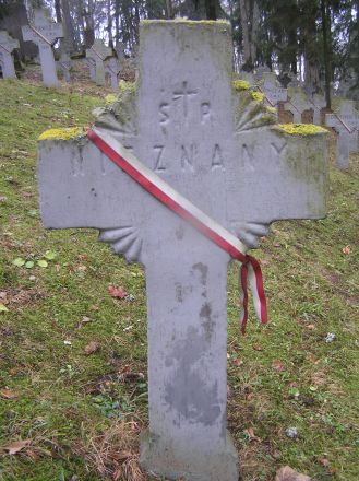 I anslutning till minnesstenen reser sig en stor mängd enkla kors på de gröna sluttningarna. Alla likadana, och på de flesta av dem hänger ett band i de polska färgerna. På en del kors står "Nieznany" – Okänd.
