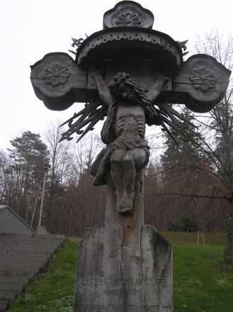 Ett monument av ett helt annat slag än Pietà finner vi en bit bort – monumentet över sovjetiska soldater som dog i kampen mot nazisterna (rest 1951). 1941 och 1945 står det på de båda stenarna i förgrunden (på var sin sida om trappan).